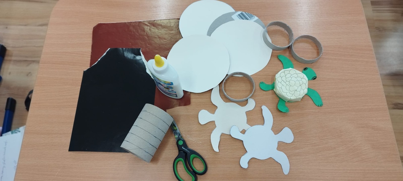 W części praktycznej zajęć uczniowie wykazali się ogromną kreatywnością – z materiałów odpadowych wykonali wesołego, wesołego żółwia. Praca plastyczna była nie tylko świetną zabawą, ale również okazją do rozmowy o recyklingu i ponownym wykorzystywaniu surowców-jest kontynuacją programu Szanuj energię chroń klimat.