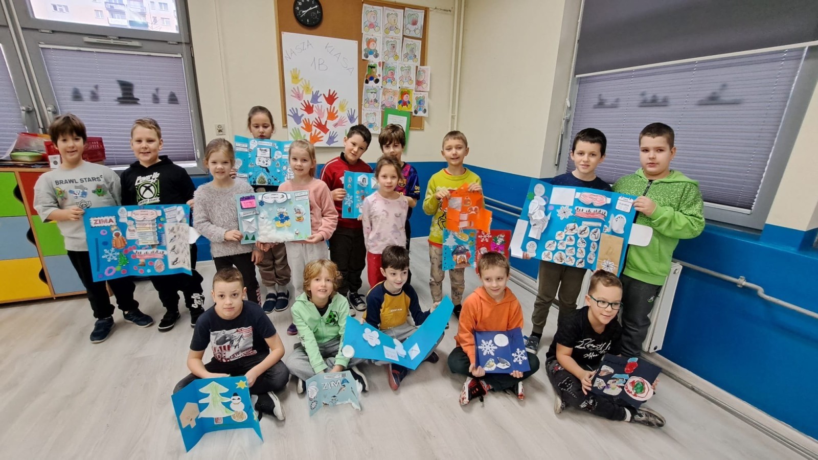 Uczniowie klasy 1b wykonali lapbooki na temat zimy w ramach akcji „Szanuj energię chroń klimat”. Dzieci pracowały z ogromnym zaangażowaniem i kreatywnością. Podczas zajęć dowiedziały się, jak zimą dbać o środowisko – dlaczego warto oszczędzać energię i ciepło, jak odpowiednio ubierać się zamiast przegrzewać pomieszczenia oraz w jaki sposób nasze codzienne wybory wpływają na klimat. Praca nad lapbookami była nie tylko świetną zabawą, ale także ważną lekcją ekologicznej odpowiedzialności.
