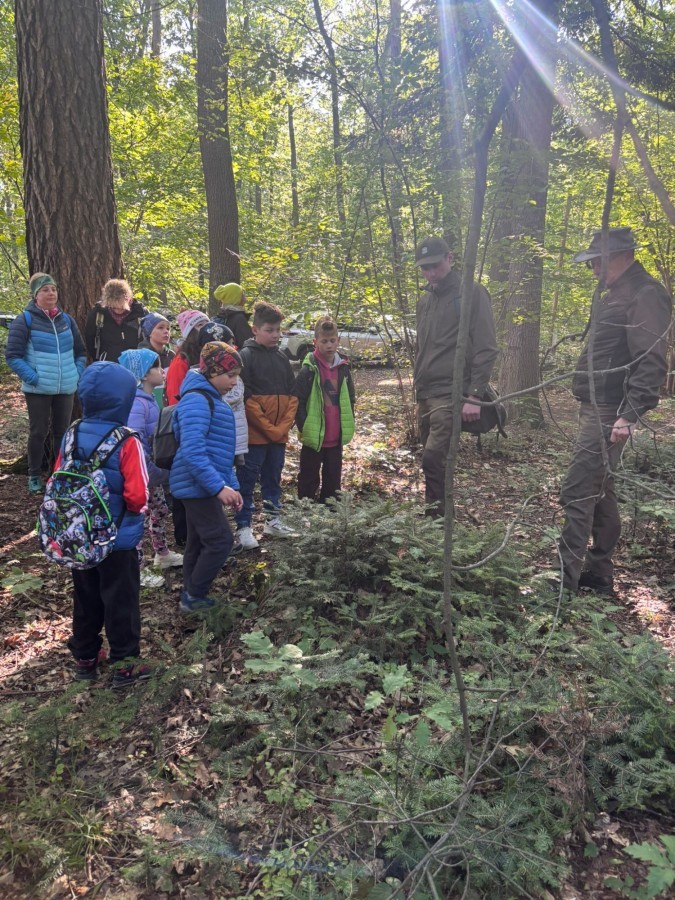 4 października klasa 3a wraz z wychowawcą udała się do Nadleśnictwa w Bielsku-Białej. Celem wycieczki był spacer z leśnikiem, który w ciekawy sposób opowiadał o warstwach lasu, rodzajach drzew oraz gospodarce leśnej. Uczniowie z dużym zaangażowaniem uczestniczyli w zajęciach, zadawali pytania i dzielili się swoimi spostrzeżeniami. Dowiedzieli się między innymi, że w miejscu wyciętych, starych drzew sadzone są nowe. Dzieci rozwiązywały również quiz przyrodniczy, utrwalając zdobytą wiedzę. Na zakończenie wizyty klasa odwiedziła szkółkę leśną, gdzie mogła zobaczyć, jak wygląda proces hodowli młodych drzewek. Tym sposobem zrealizowaliśmy działanie ekologiczne 👏🌳🌲