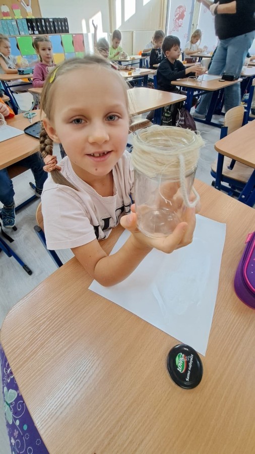 W ramach akcji Szanuj Energię Chroń Klimat mieliśmy ogromną przyjemność gościć w naszej szkole firmę Flojammu, jednego z partnerów projektu. Dzieci z klasy 1c wzięły udział w wyjątkowych warsztatach „Dajemy surowcom drugie życie”, podczas których mogły samodzielnie wykonać przepiękne lampiony wykorzystując słoiki. 🏮💚