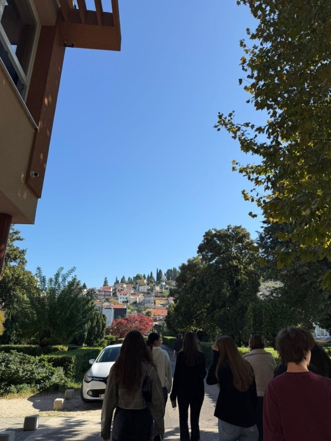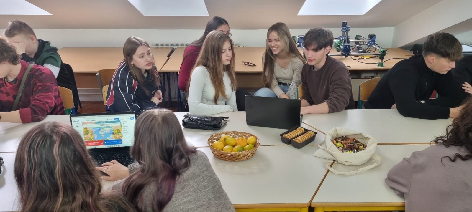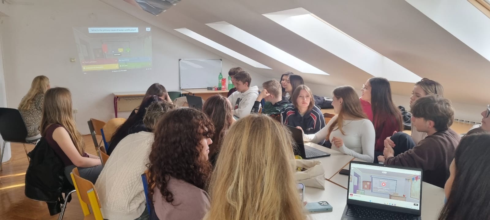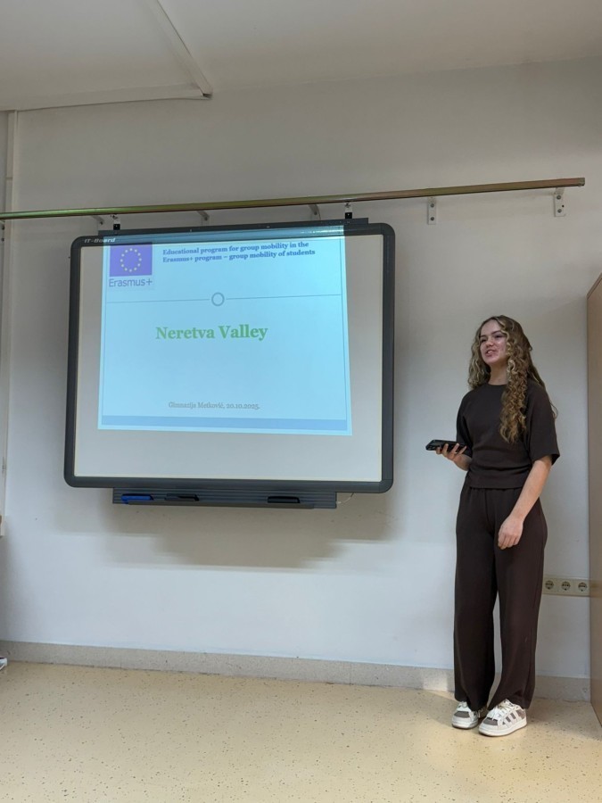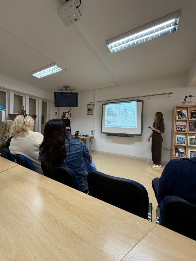 Drugi dzień mobilności upłynął pod znakiem intensywnej pracy nad kolejnym zadaniem projektowym – quizem Kahoot pod tytułem Our Climate, Our Future. Uczniowie pracowali w międzynarodowych grupach: wyszukiwali materiały źródłowe, tworzyli pytania oraz projektowali własne kahooty, które następnie testowali, grając wspólnie z rówieśnikami. Była to nie tylko okazja do pogłębienia wiedzy na temat zmian klimatu, ale również do rozwijania umiejętności współpracy i kreatywności. Po zajęciach uczestnicy udali się na spacer do jaskini Jama w Predolcu – najważniejszego obiektu speleologicznego w Metkoviću i jednego z najcenniejszych tego typu miejsc w całej Dalmacji. Dzień zakończył się pracą nad kolejnym materiałem oraz przygotowaniem dokumentacji fotograficznej na bloga ekologicznego, w którym uczniowie relacjonują przebieg projektu i dzielą się swoimi refleksjami.