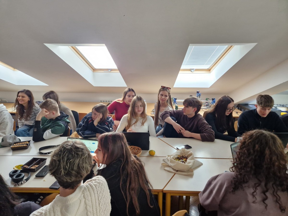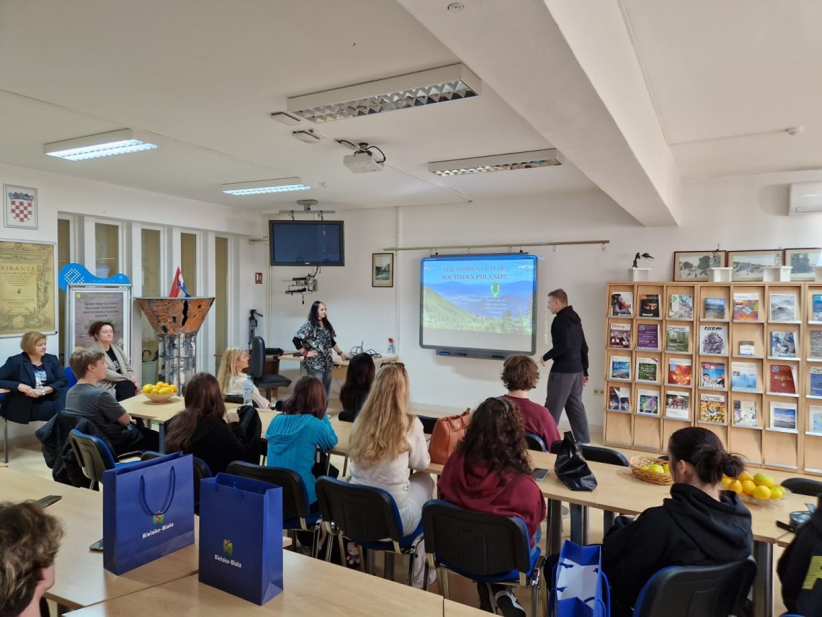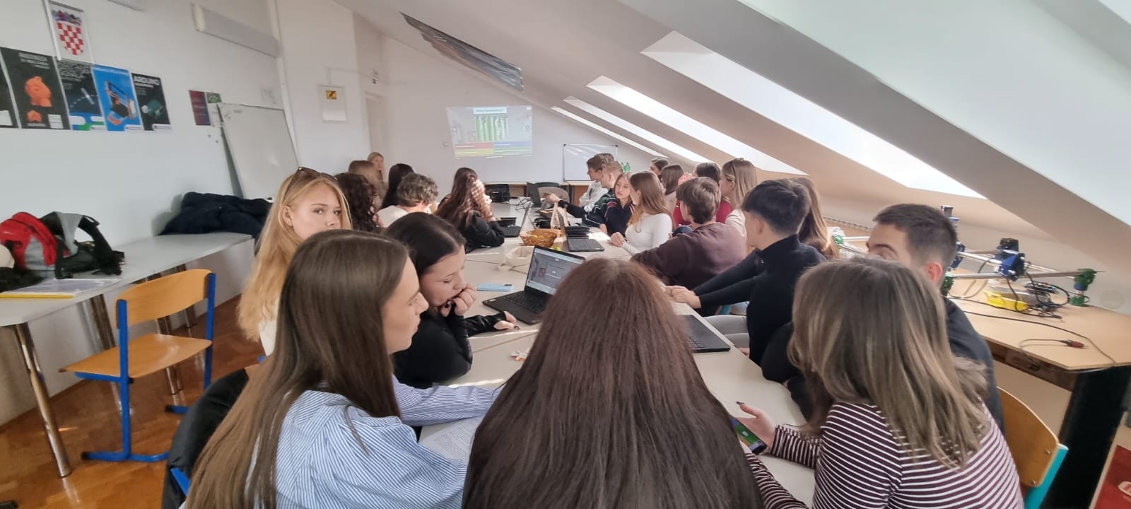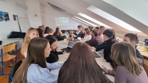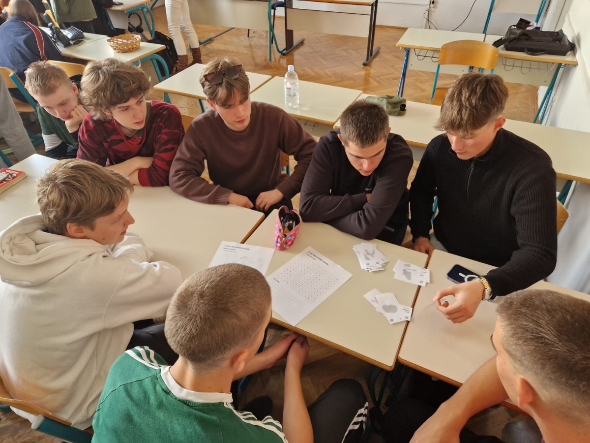 Drugi dzień mobilności upłynął pod znakiem intensywnej pracy nad kolejnym zadaniem projektowym – quizem Kahoot pod tytułem Our Climate, Our Future. Uczniowie pracowali w międzynarodowych grupach: wyszukiwali materiały źródłowe, tworzyli pytania oraz projektowali własne kahooty, które następnie testowali, grając wspólnie z rówieśnikami. Była to nie tylko okazja do pogłębienia wiedzy na temat zmian klimatu, ale również do rozwijania umiejętności współpracy i kreatywności. Po zajęciach uczestnicy udali się na spacer do jaskini Jama w Predolcu – najważniejszego obiektu speleologicznego w Metkoviću i jednego z najcenniejszych tego typu miejsc w całej Dalmacji. Dzień zakończył się pracą nad kolejnym materiałem oraz przygotowaniem dokumentacji fotograficznej na bloga ekologicznego, w którym uczniowie relacjonują przebieg projektu i dzielą się swoimi refleksjami.