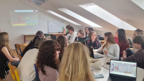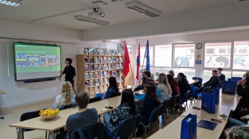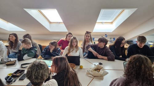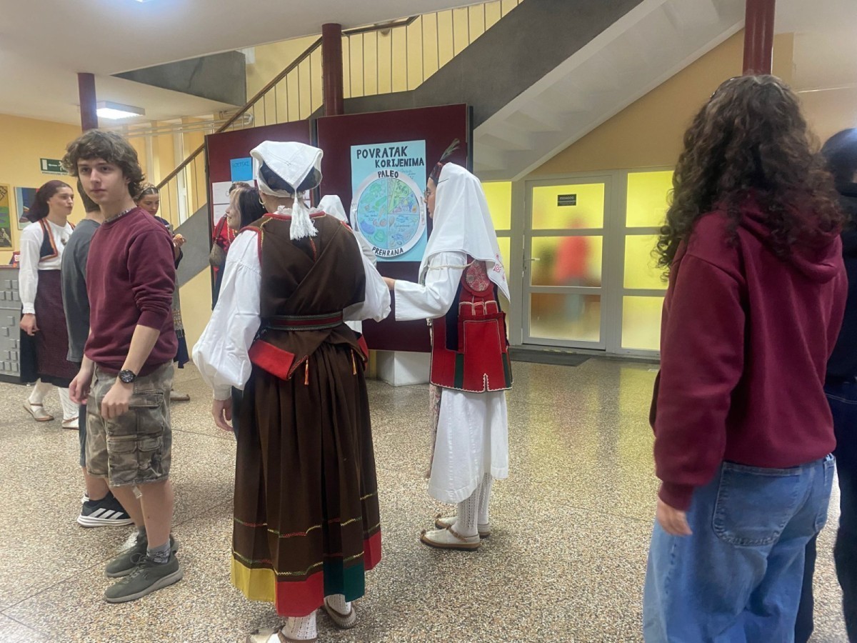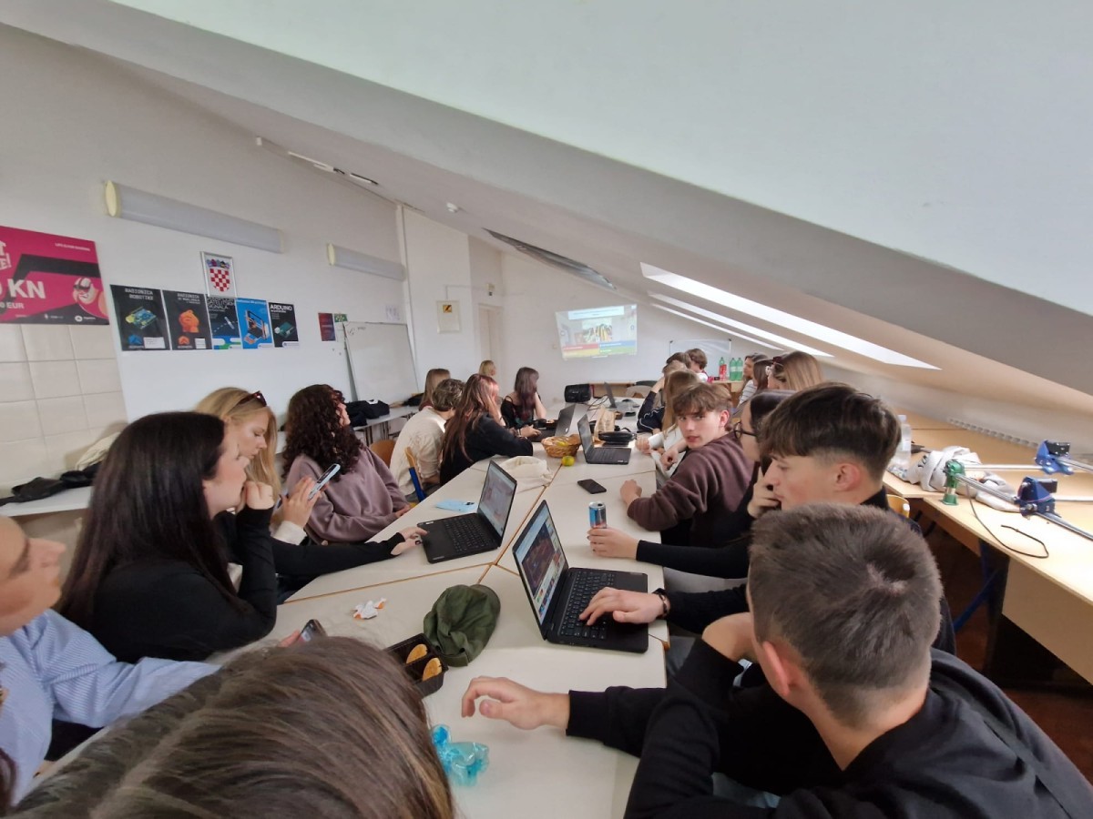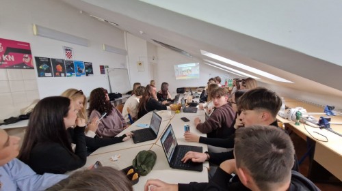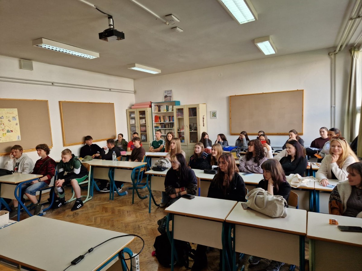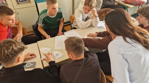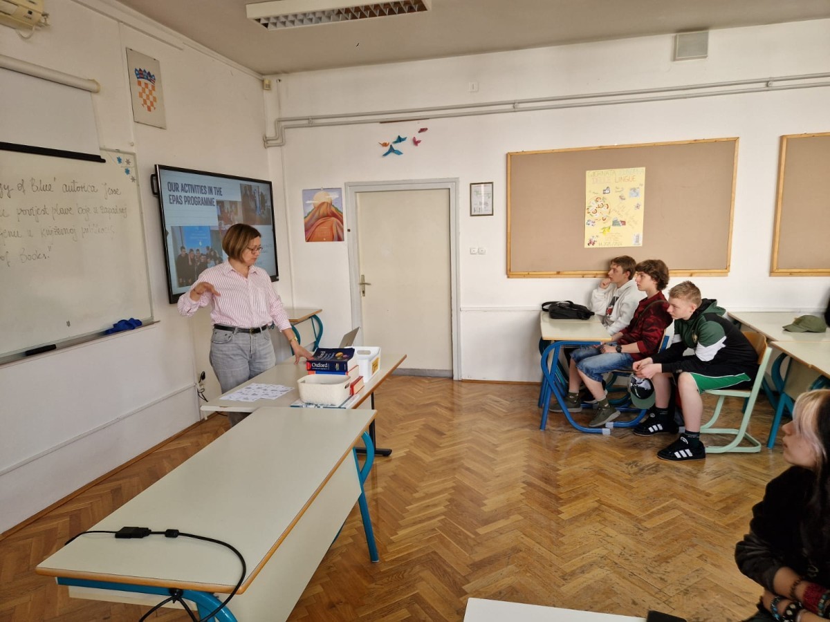 Drugi dzień mobilności upłynął pod znakiem intensywnej pracy nad kolejnym zadaniem projektowym – quizem Kahoot pod tytułem Our Climate, Our Future. Uczniowie pracowali w międzynarodowych grupach: wyszukiwali materiały źródłowe, tworzyli pytania oraz projektowali własne kahooty, które następnie testowali, grając wspólnie z rówieśnikami. Była to nie tylko okazja do pogłębienia wiedzy na temat zmian klimatu, ale również do rozwijania umiejętności współpracy i kreatywności. Po zajęciach uczestnicy udali się na spacer do jaskini Jama w Predolcu – najważniejszego obiektu speleologicznego w Metkoviću i jednego z najcenniejszych tego typu miejsc w całej Dalmacji. Dzień zakończył się pracą nad kolejnym materiałem oraz przygotowaniem dokumentacji fotograficznej na bloga ekologicznego, w którym uczniowie relacjonują przebieg projektu i dzielą się swoimi refleksjami.