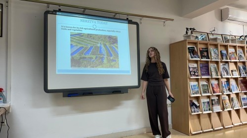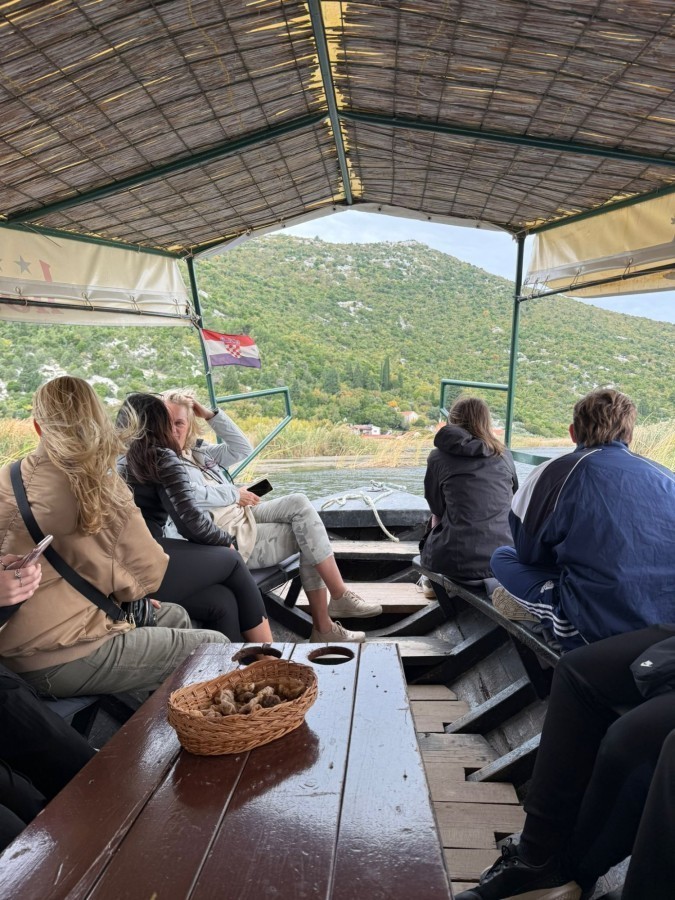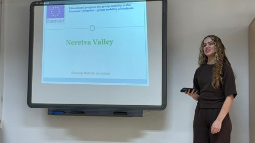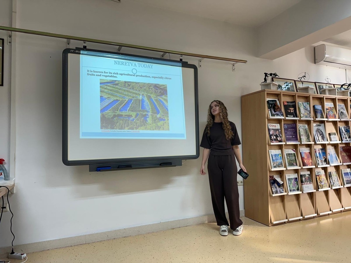 Piątym zadaniem projektowym realizowanym podczas mobilności było sprzątanie wybranych fragmentów Doliny Neretwy – niezwykle malowniczego miejsca, które stanowi prawdziwy raj dla miłośników aktywnego wypoczynku na świeżym powietrzu. Uczniowie, wspólnie z przedstawicielami szkoły partnerskiej, mieli także okazję zwiedzić Deltę Neretwy – wyjątkowy obszar o powierzchni około 20 000 hektarów, z czego 12 000 znajduje się na terenie Chorwacji. Ujście rzeki tworzy rozległy labirynt kanałów, jezior, bagien i trzcinowisk. To miejsce, w którym słodka woda spotyka się z morską, tworząc unikalne warunki dla niezwykle bogatej flory i fauny. Delta Neretwy jest ekosystemem o ogromnym znaczeniu ekologicznym – stanowi dom dla wielu rzadkich i zagrożonych gatunków roślin oraz zwierząt. Obszar ten objęty jest programem Natura 2000 jako ważny teren ochrony ptaków. Ostatniego dnia mobilności odbyło się spotkanie podsumowujące z udziałem przedstawicieli szkoły partnerskiej. Uczestnicy dokonali ogólnej oceny wykonanych działań, omówili poziom satysfakcji z realizacji zadań projektowych, a także wzięli udział w rozmowach i ćwiczeniach językowych. Nie zabrakło również chwili na wymianę kontaktów i podsumowanie wspólnych doświadczeń.