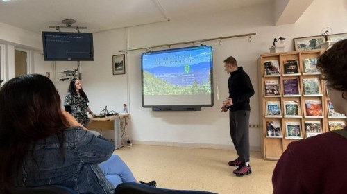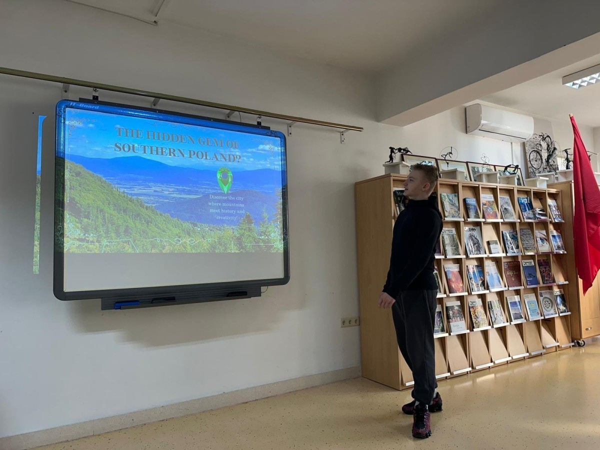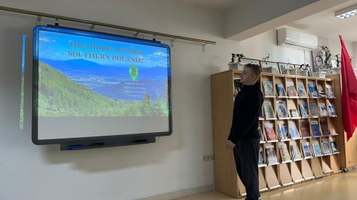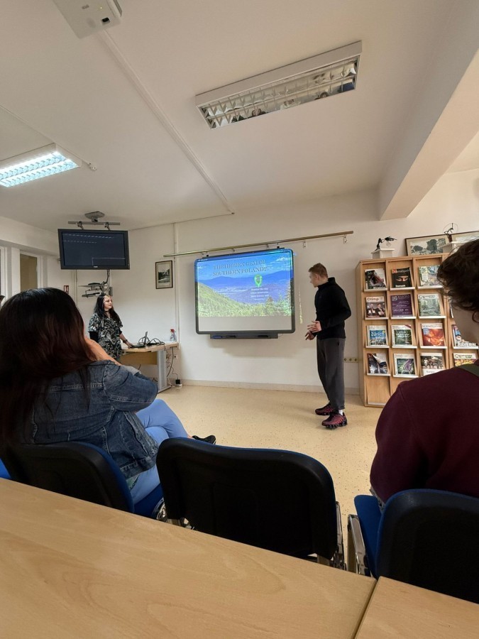 Trzeci dzień mobilności przyniósł uczestnikom kolejne inspirujące zadanie. Uczniowie wspólnie z młodzieżą ze szkoły partnerskiej tworzyli edukacyjne lapbooki pod hasłem „We for the Earth”. Każda grupa opracowała pięć pytań do swojego projektu, a następnie odbyła się prezentacja prac, wymiana lapbooków i wspólne udzielanie odpowiedzi na przygotowane pytania. Było to doskonałe ćwiczenie nie tylko z zakresu wiedzy ekologicznej, ale także współpracy międzynarodowej i kreatywnego myślenia. Popołudniowa część dnia miała charakter przyrodniczy. W ramach zajęć terenowych uczestnicy udali się na spacer do Muzeum Przyrodniczego oraz odwiedzili lokalne rezerwaty przyrody. Celem wizyty była obserwacja bioróżnorodności oraz pogłębianie wiedzy na temat ochrony zagrożonych gatunków roślin i zwierząt. Był to wartościowy czas, który połączył edukację z bezpośrednim kontaktem z naturą.