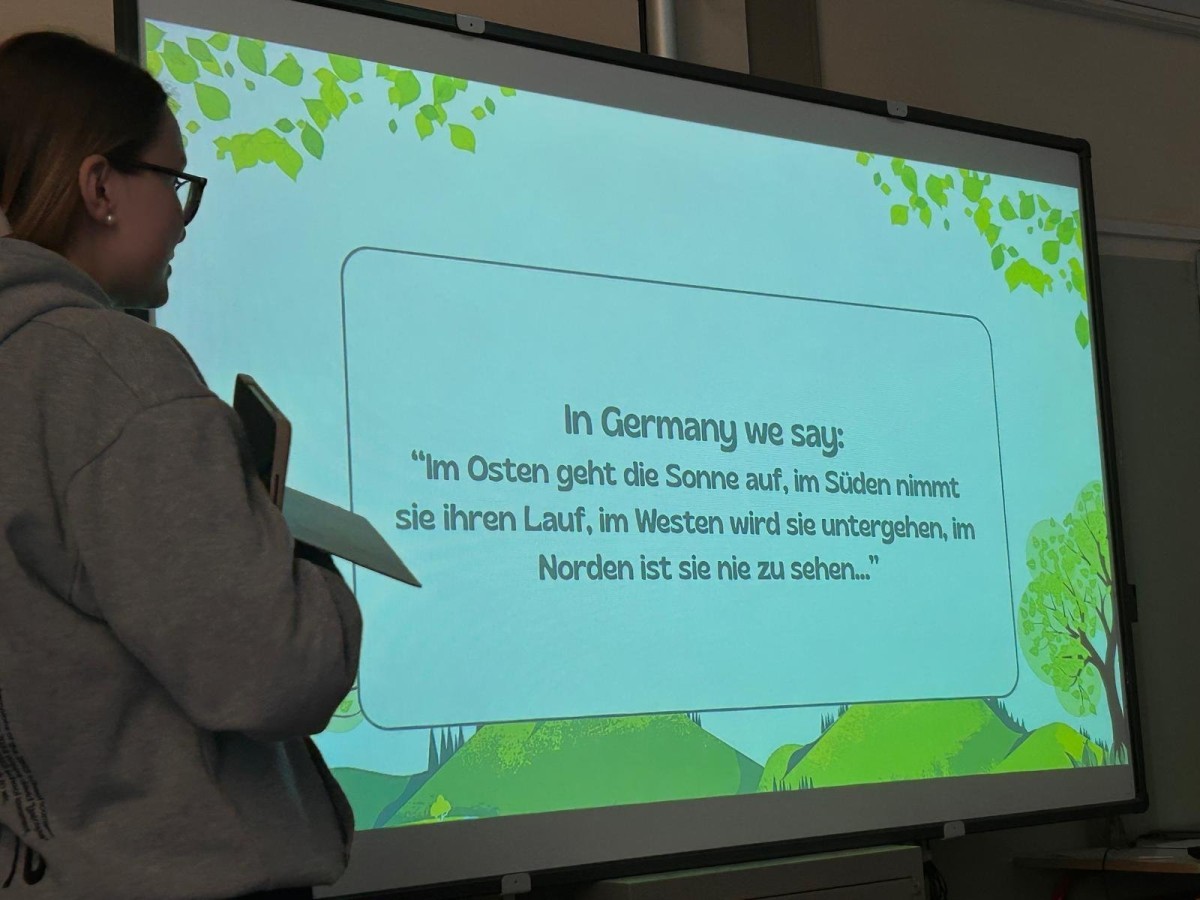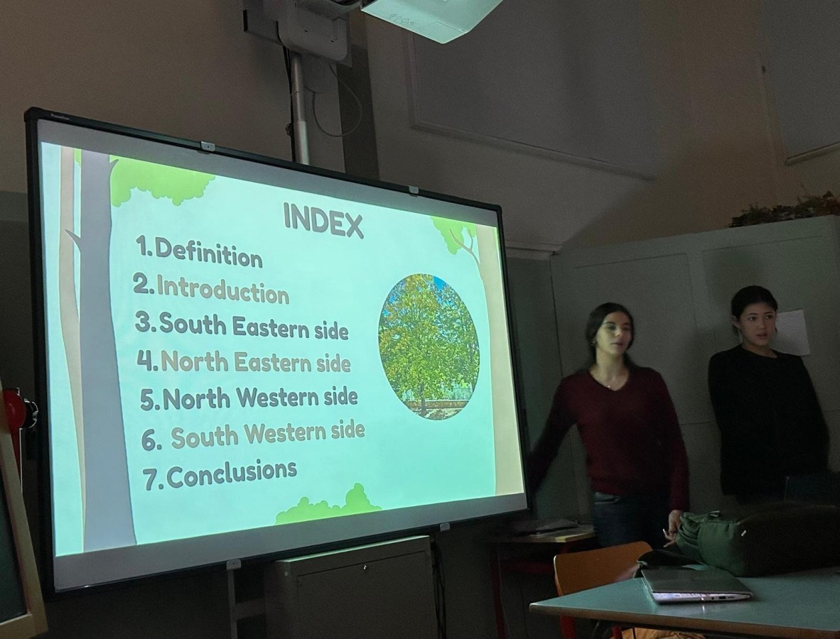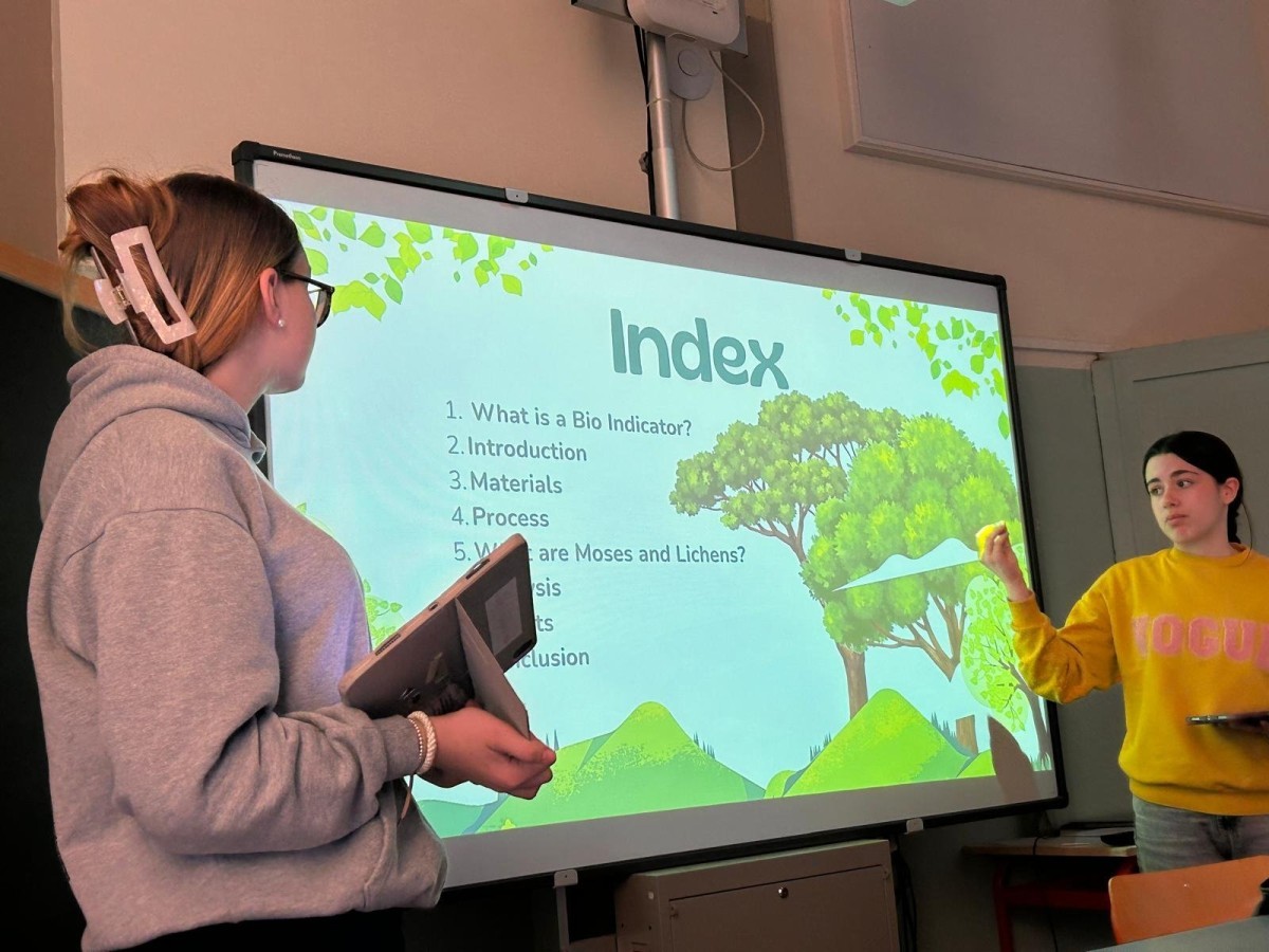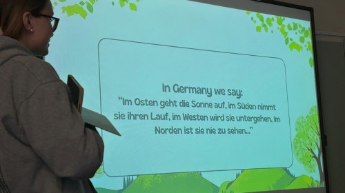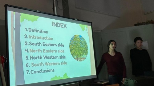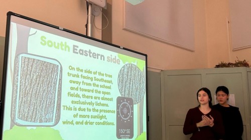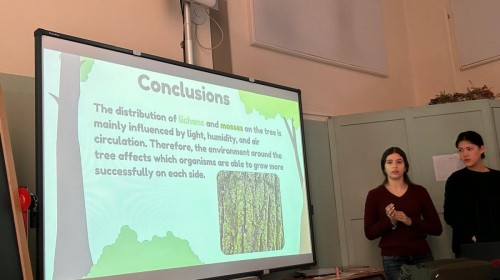 Kolejną obserwowaną lekcją była przyroda w klasie czwartej. Uczniowie przedstawiali prezentacje w języku angielskim podsumowujące projekt realizowany w poprzednim tygodniu. Dotyczył on obserwacji drzew rosnących przed szkołą, a także występujących na nich mchów i porostów. Uczniowie analizowali również warunki przyrodnicze oraz kierunki świata, które wpływają na wzrost i rozwój tych organizmów.