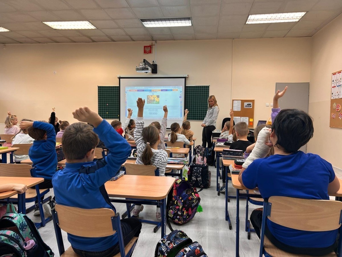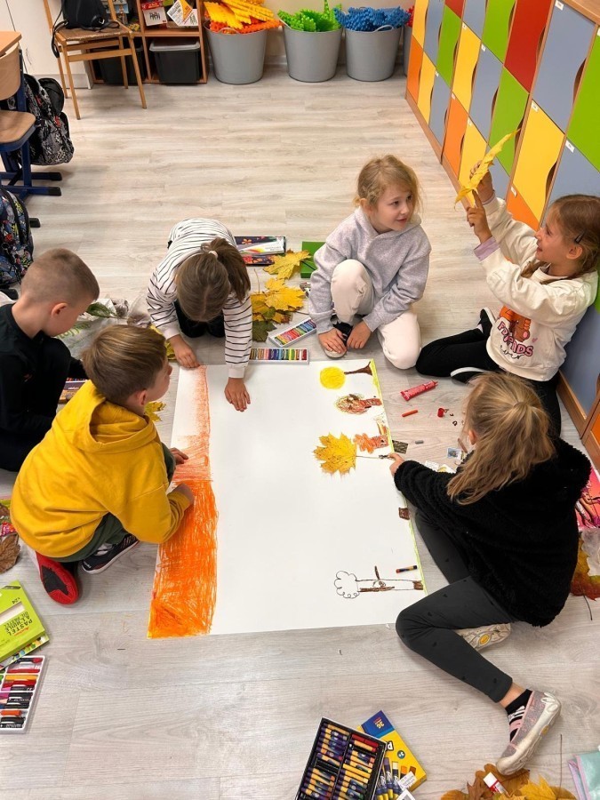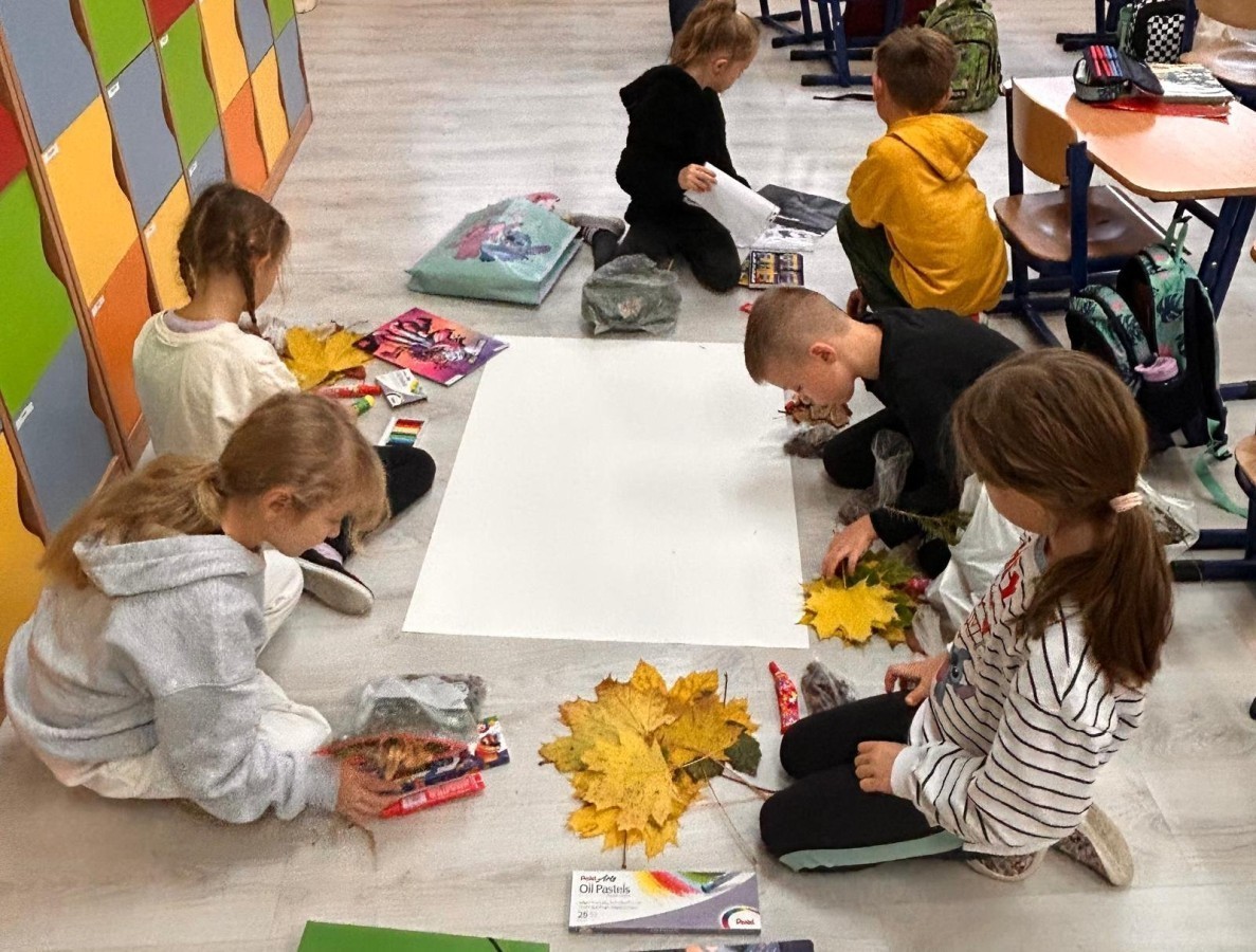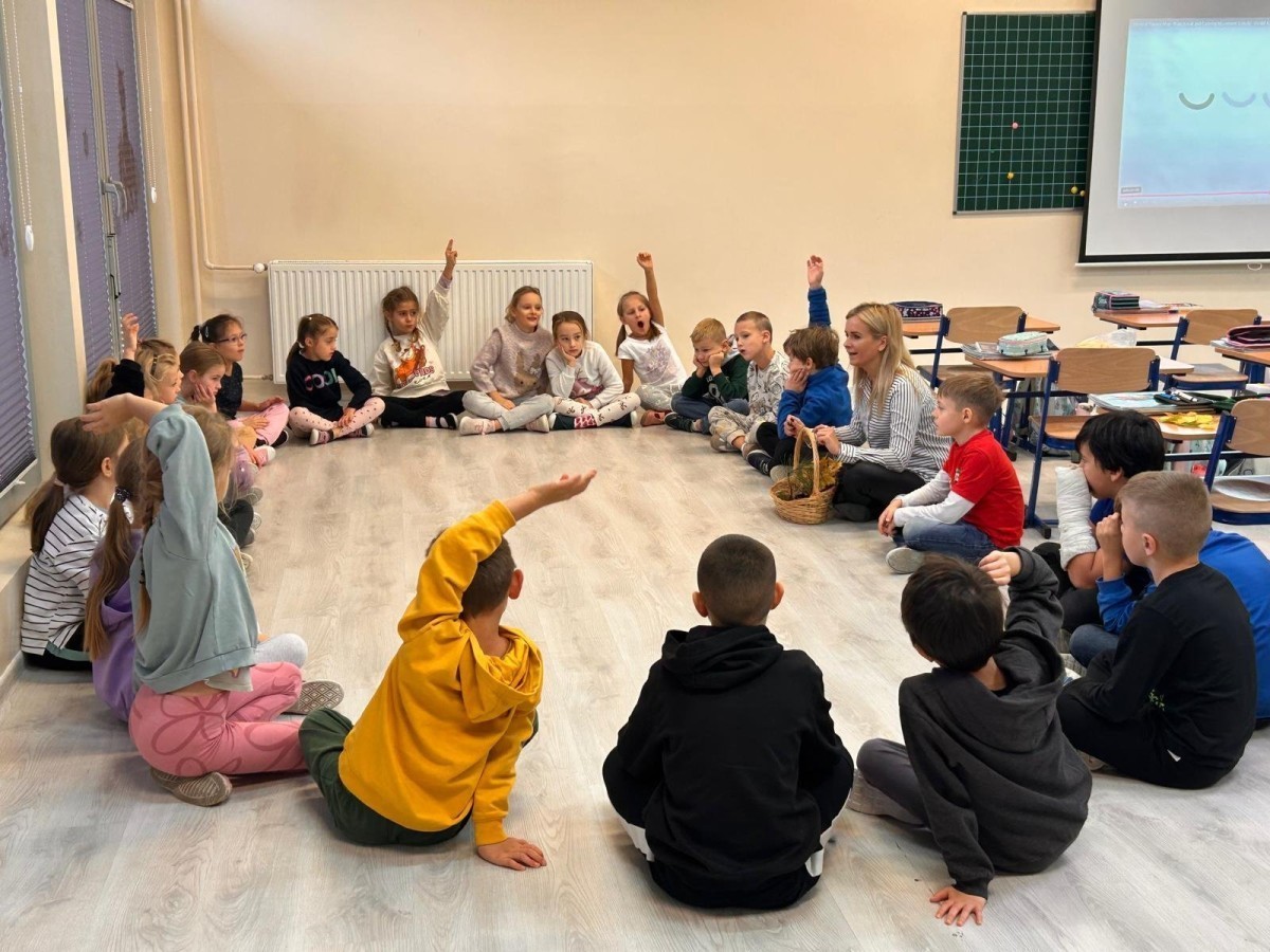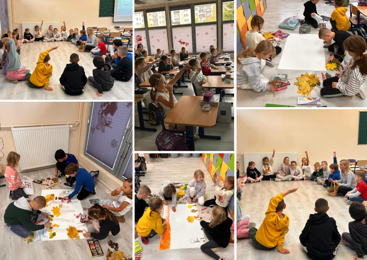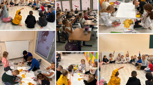 W dniu 21 października zapomnieliśmy o rzeczywistości w szkolnej ławce - a wszystko za sprawą lekcji otwartej dla klasy pierwszej SP pod hasłem „Jesień w lesie – odkrywamy barwy, dźwięki i tajemnice przyrody”, poprowadzonej przez panią Sylwię Waligórę. Uczniowie przenieśli się w magiczny świat jesiennego lasu, wsłuchując się w jego odgłosy i obserwując zmieniającą się przyrodę. Podczas zajęć dzieci pracowały w grupach, tworząc wspólne prace plastyczne inspirowane jesiennymi barwami i darami natury. Lekcja sprzyjała rozwijaniu czterech kluczowych kompetencji 4C’s: kreatywności, komunikacji, krytycznego myślenia oraz współpracy. Uczniowie dzielili się pomysłami, wspólnie planowali działania i uczyli się, jak słuchać siebie nawzajem. Nauczyciel podkreślił znaczenie współdziałania i otwartości na pomysły innych. Zajęcia były pełne radości, twórczej energii i refleksji nad pięknem przyrody, która jesienią zachwyca swoją różnorodnością. Inspiracją do zaplanowania tak ciekawej lekcji, rozwijającej kompetencje 4K, był międzynarodowy kurs, zorganizowany w ramach programu Erasmus+, w którym udział wzięła pani Waligóra.