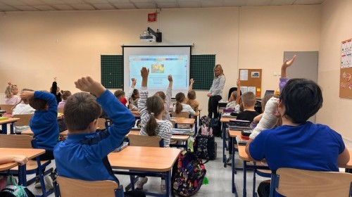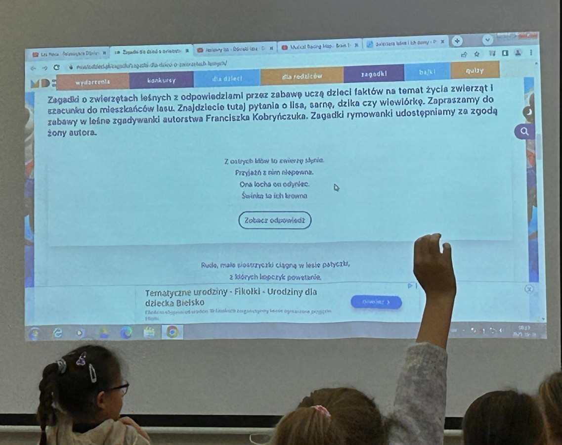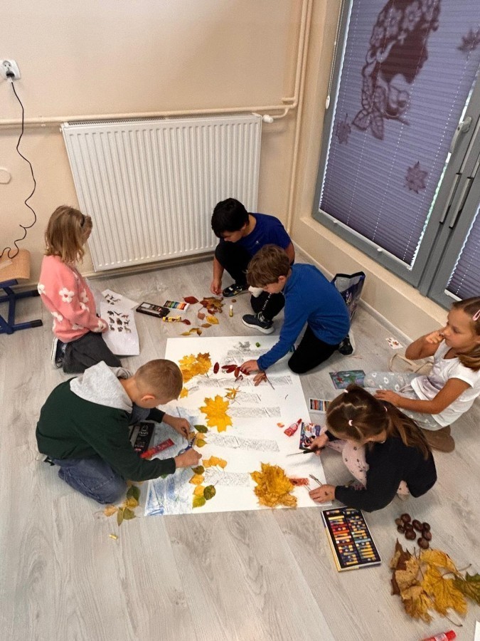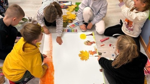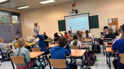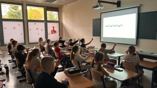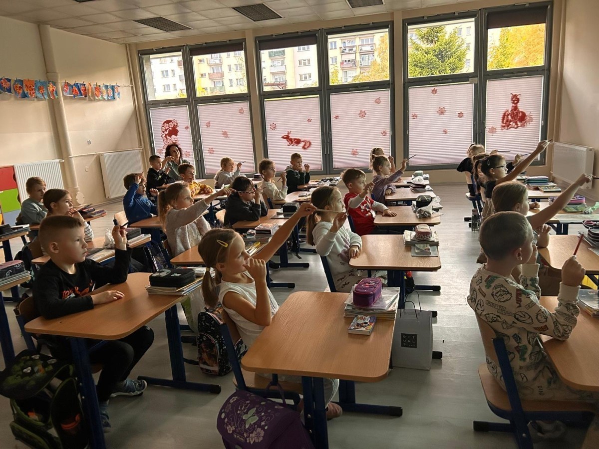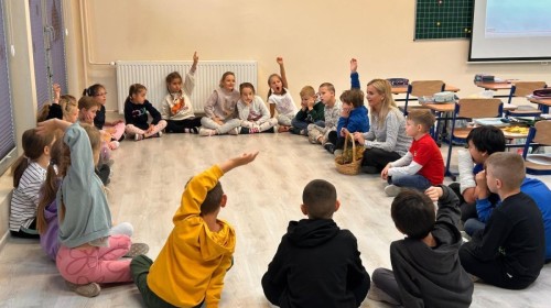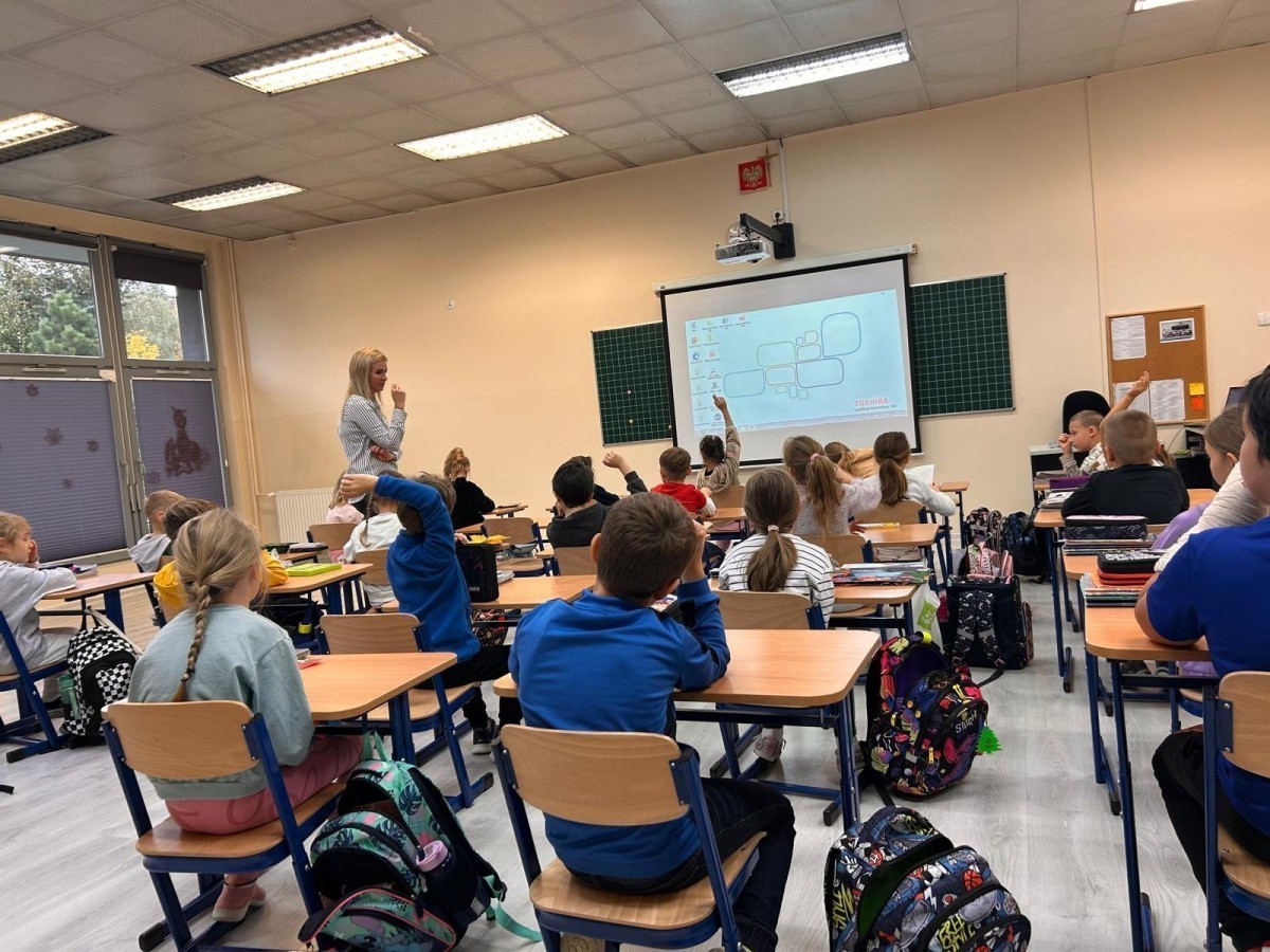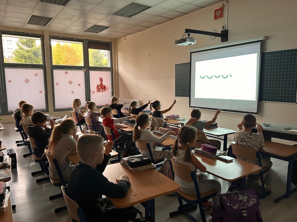 W dniu 21 października zapomnieliśmy o rzeczywistości w szkolnej ławce - a wszystko za sprawą lekcji otwartej dla klasy pierwszej SP pod hasłem „Jesień w lesie – odkrywamy barwy, dźwięki i tajemnice przyrody”, poprowadzonej przez panią Sylwię Waligórę. Uczniowie przenieśli się w magiczny świat jesiennego lasu, wsłuchując się w jego odgłosy i obserwując zmieniającą się przyrodę. Podczas zajęć dzieci pracowały w grupach, tworząc wspólne prace plastyczne inspirowane jesiennymi barwami i darami natury. Lekcja sprzyjała rozwijaniu czterech kluczowych kompetencji 4C’s: kreatywności, komunikacji, krytycznego myślenia oraz współpracy. Uczniowie dzielili się pomysłami, wspólnie planowali działania i uczyli się, jak słuchać siebie nawzajem. Nauczyciel podkreślił znaczenie współdziałania i otwartości na pomysły innych. Zajęcia były pełne radości, twórczej energii i refleksji nad pięknem przyrody, która jesienią zachwyca swoją różnorodnością. Inspiracją do zaplanowania tak ciekawej lekcji, rozwijającej kompetencje 4K, był międzynarodowy kurs, zorganizowany w ramach programu Erasmus+, w którym udział wzięła pani Waligóra.