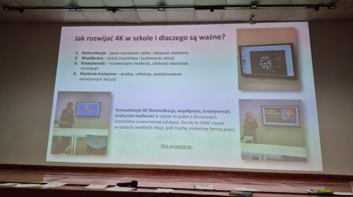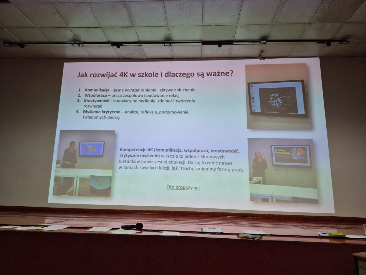 Nauczyciele rozwijali tzw. kompetencje miękkie: skuteczną komunikację, współpracę, kreatywność i krytyczne myślenie. Zajęcia warsztatowe, integracyjne i projektowe pozwoliły poznać nowoczesne metody nauczania, takie jak „sześć kapeluszy myślowych” czy techniki pozytywnej psychologii, które wspierają rozwój uczniów i budowanie dobrej atmosfery w klasie.