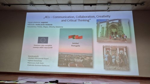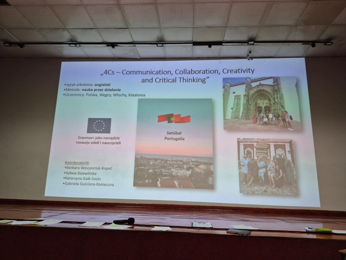 Udział w kursach to nie tylko okazja do zdobycia nowych umiejętności, ale także inspirująca wymiana doświadczeń z nauczycielami z całej Europy-takie opinie wygłosili uczestnicy kursów, którzy swoimi doświadczeniami podzielili się z całym gronem pedagogicznym w trakcie konferencji w dniu 29 sierpnia 2025 roku. Dzięki temu zdobyta wiedza i praktyczne pomysły z pewnością wzbogacą codzienną pracę dydaktyczną nie tylko nauczycieli biorących faktycznie udział w mobilnościach ale szerszego grona pracowników naszej placówki.
