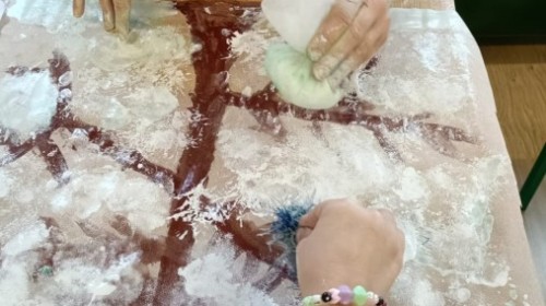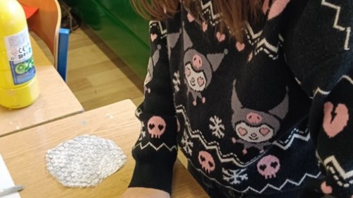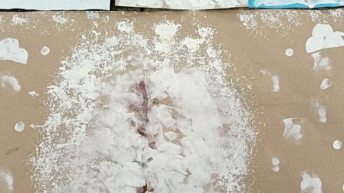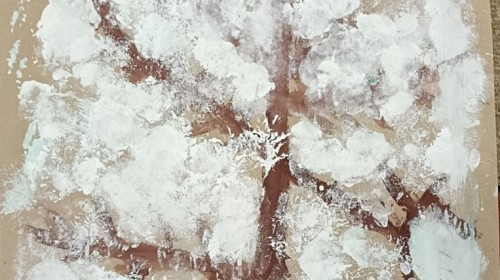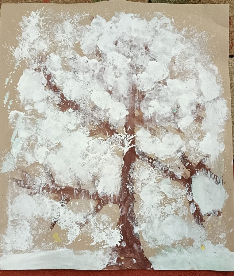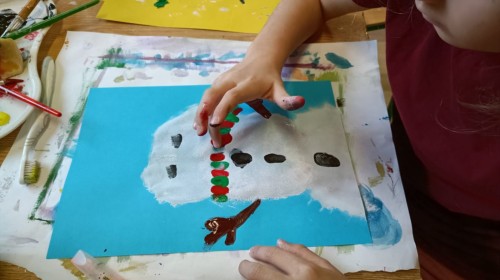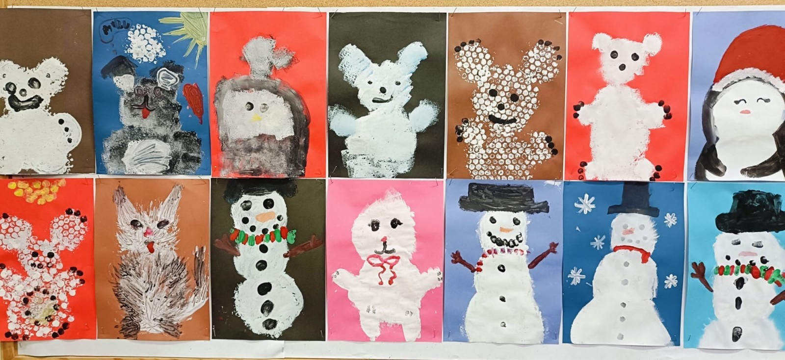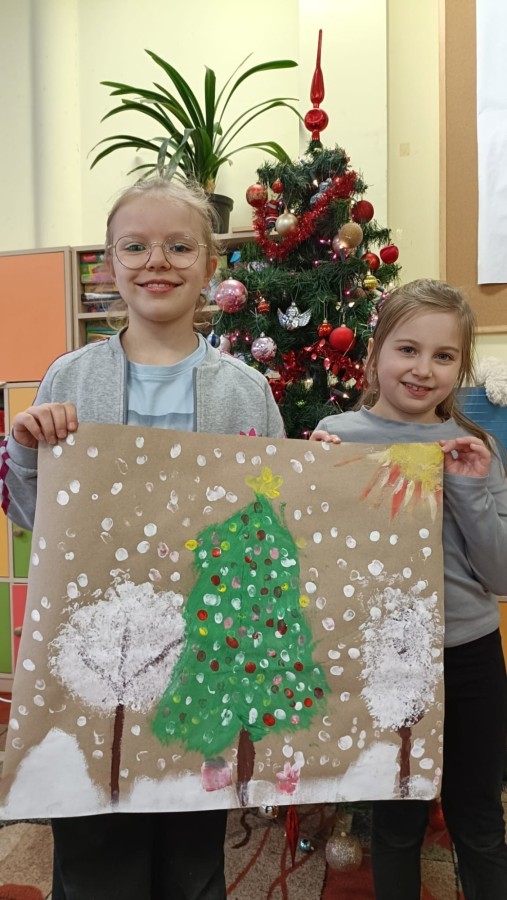 Kolejne nasze zadanie Ogólnopolskiego Projektu Edukacyjnego ,, Zabawa sztuką ' proponowało nam zastąpienie pędzla malarskiego innymi materiałami. Wykorzystaliśmy więc waciki, pompony, folię bąbelkową, filc, kawałki papieru , włóczkę i... palce dłoni. Inspiracją do naszych prac była piękna, zimowa aura za oknem. Wykorzystując nietypowe narzędzia powstały bardzo urozmaicone prace przedstawiające misie polarne, bałwanki, choinki i piękne ośnieżone drzewa.